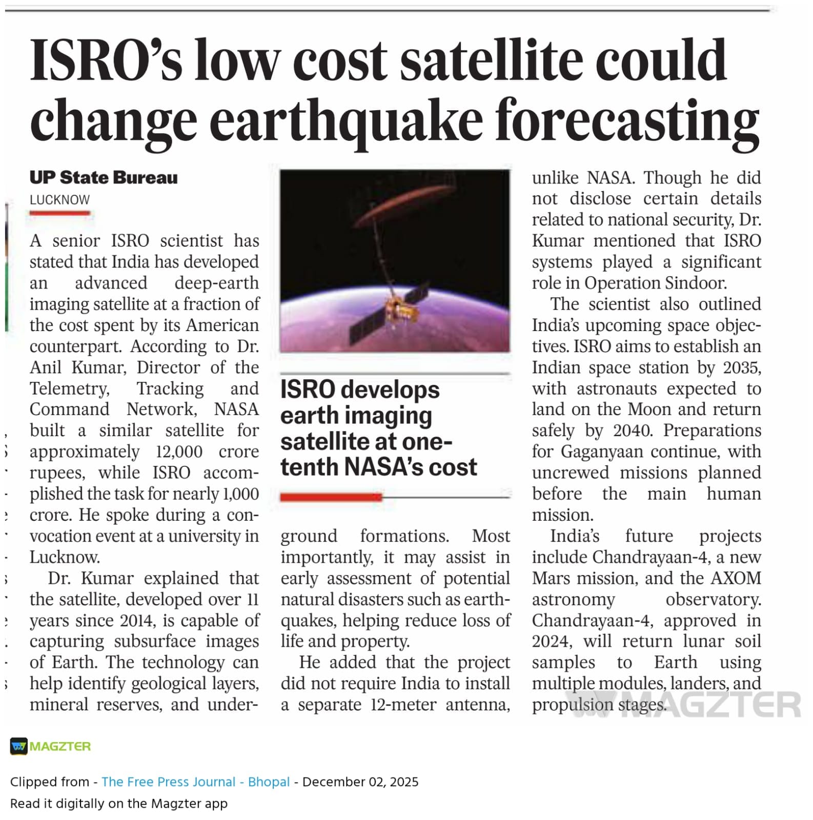 To be clear, an ISRO satellite that can forecast earthquakes or image subsurface features and which the organisation built and launched for Rs 1,000 crore does not exist. What actually exists is NISAR, a part of which ISRO built. The claims are almost spiteful because they purport to come from a senior ISRO official whose work likely benefited from the ISRO-NASA collaboration and because he ought to have known better than to mislead.
